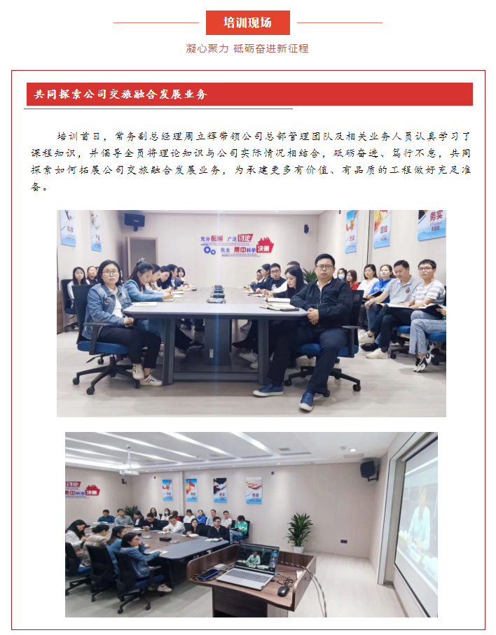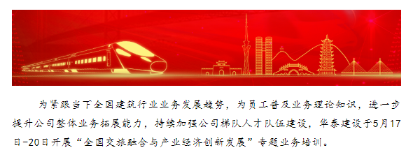 為緊跟當(dāng)下全國建筑行業(yè)業(yè)務(wù)發(fā)展趨勢,為員工普及業(yè)務(wù)理論知識,進(jìn)一步提升公司整體業(yè)務(wù)拓展能力,持續(xù)加強公司梯隊人才隊伍建設(shè),華泰建設(shè)于5月17日-20日開展“全國交旅融合與產(chǎn)業(yè)經(jīng)濟(jì)創(chuàng)新發(fā)展”專題業(yè)務(wù)培訓(xùn)。