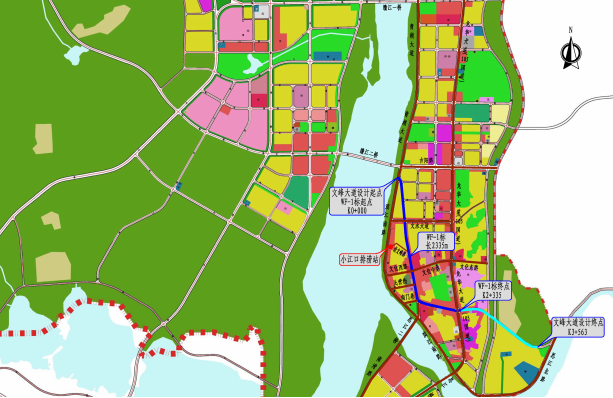 文峰大道起點與濱江南路交叉,然后沿現(xiàn)狀文峰大道走向,向南分別于文水大道、文化西路、民營街、南門巷與南灣路交叉,然后折向東,與龍華大道(105國道)交叉,終于七里灣,路線全長3.738km。本項目共分三個標段,標段劃分如下表: