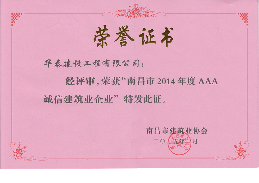 2014年度AAA誠信建筑業(yè)企業(yè)